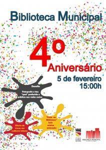 No dia 5 de fevereiro a Biblioteca Municipal comemora o seu 4.º aniversário. Para assinalar a data e à semelhança dos anos anteriores os melhores leitores da sala infantojuvenil serão presenteados com a oferta de livros. Durante a tarde haverá “Festa na Biblioteca”, com música, bolo de aniversário e muita diversão. Foi ainda lançado o […]