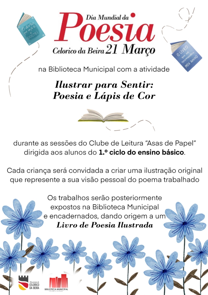 O município de Celorico da Beira, através da Biblioteca Municipal, assinala o Dia Mundial da Poesia, durante o mês de março, com a atividade “Ilustrar para Sentir: Poesia e Lápis de Cor”, dirigida aos alunos do 1ª Ciclo do Ensino Básico do concelho.