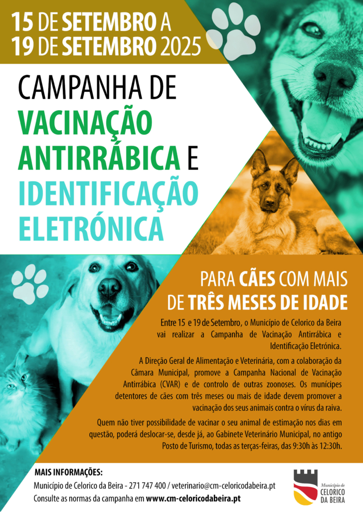 De 15 a 19 de setembro, o Município de Celorico da Beira realizará a Campanha de Vacinação Antirrábica e Identificação Eletrónica.