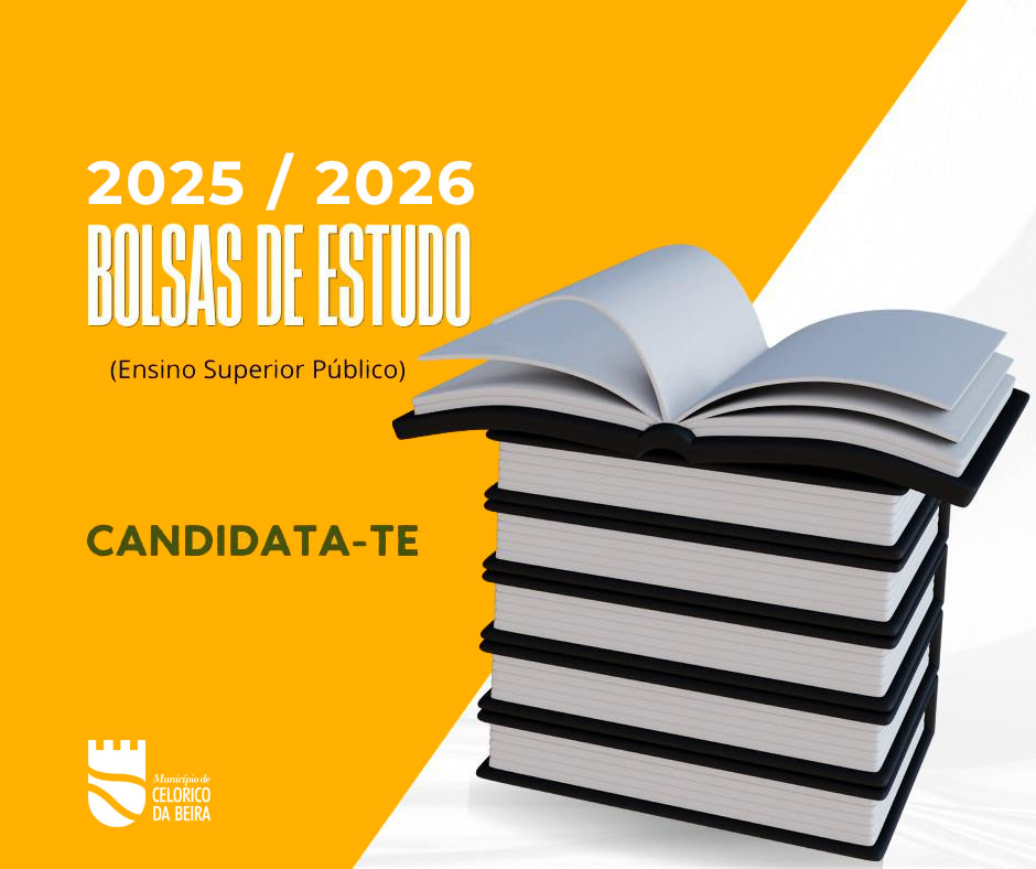 Decorre de 6 a 24 de outubro de 2025, o período de submissão de requerimentos à atribuição de 35 bolsas de estudo a estudantes do Ensino Superior Público. Os candidatos deverão ser residentes no concelho de Celorico da Beira, ter idade igual ou inferior a 25 anos, estar matriculados em estabelecimentos de ensino superior público e não possuir outro curso superior.