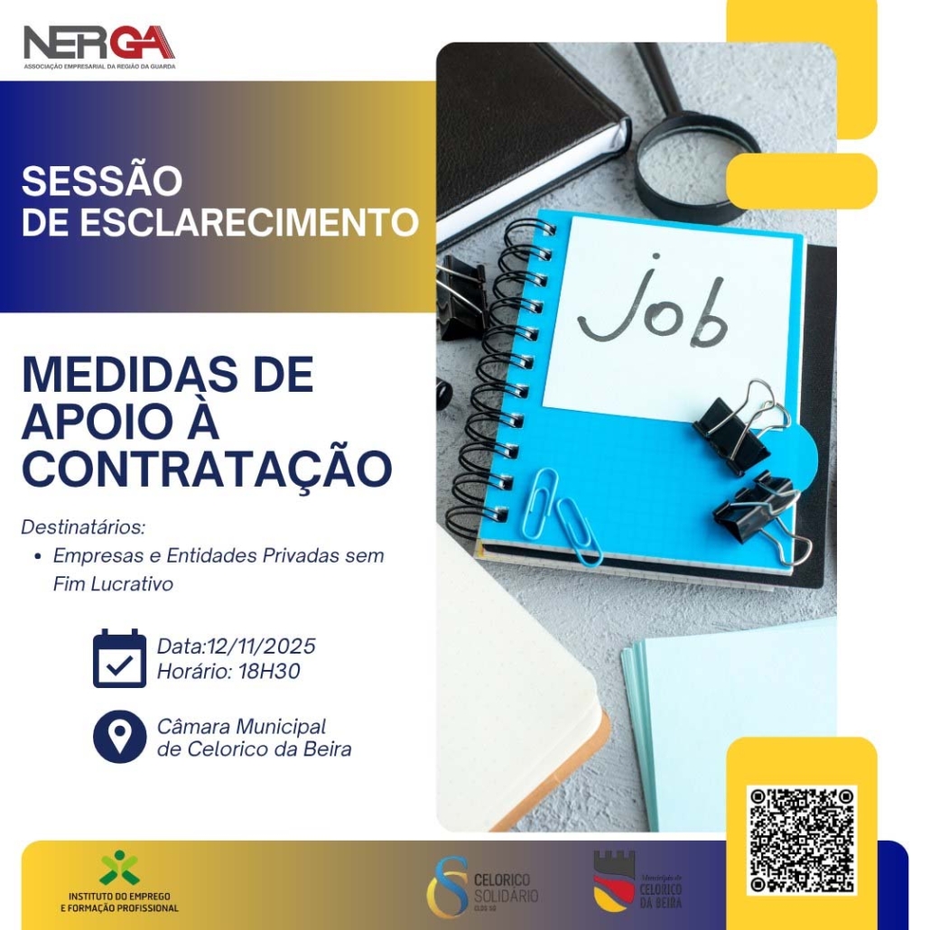 O NERGA, em colaboração com o Município de Celorico da Beira e o Centro de Emprego e Formação Profissional da Guarda, vai levar a efeito no próximo dia 12 de novembro, pelas 18H30, no Salão Nobre dos Paços do Concelho, a sessão de esclarecimento “Medidas de Apoio à Contratação”, dirigida a empresas e Entidades Privadas sem fins lucrativos.
