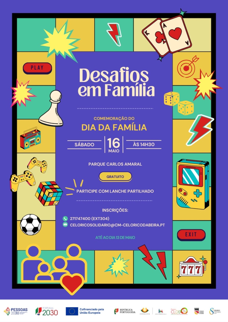 No âmbito da comemoração do Dia da Família, no próximo dia 16 de maio, o Município de Celorico da Beira, através do CLDS 5G Celorico Solidário e do Gabinete de Desporto e Nutrição, vai promover um conjunto de atividades dirigidas a famílias com crianças e jovens.