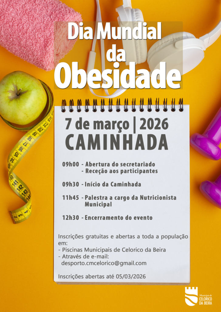 O município de Celorico da Beira leva a efeito no próximo dia 7 de março, durante a manhã, uma caminhada e uma palestra alusiva à temática da obesidade, com a nutricionista municipal, no âmbito do Dia Mundial da Obesidade (4/3), que este ano tem como lema “8 Bilhões de Razões para Agir sobre a Obesidade”.