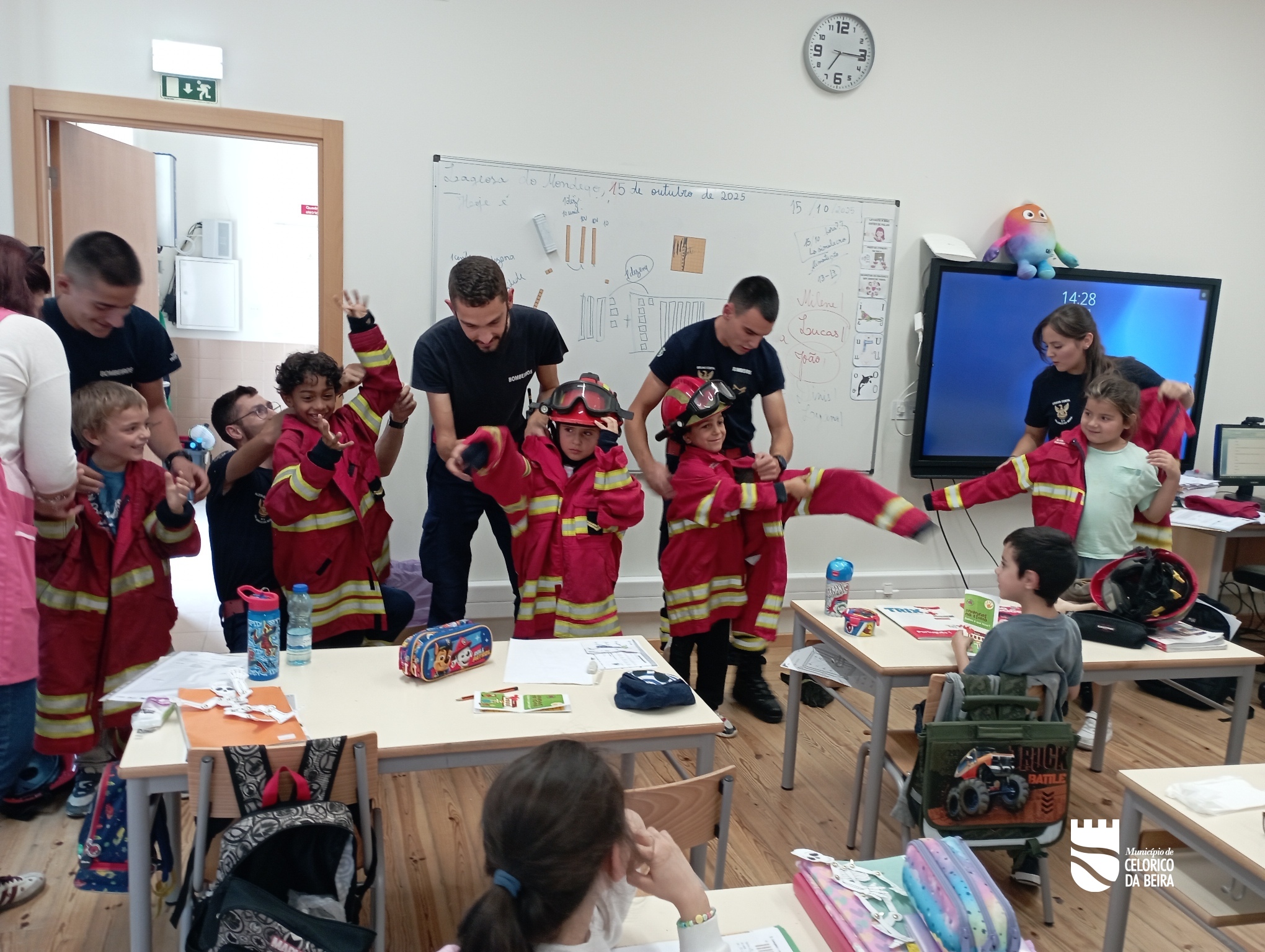 A título de curiosidade e de forma descontraída mas, pedagógica, os alunos aprenderam a utilizar o extintor e ficaram a conhecer os utensílios que os bombeiros utilizam para diferentes fases do fogo. Para conferir maior realismo às simulações ou simplesmente para concretizar um sonho, as crianças vestiram a farda dos bombeiros, pegaram nas mangueiras de água e entraram no veículo dos bombeiros.