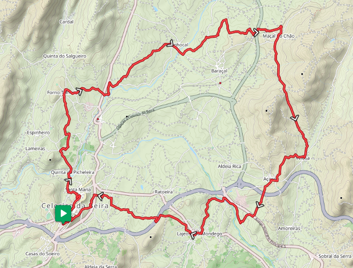 Explorando a zona norte do concelho, este percurso possui o rio Mondego como eixo central. Saindo da cidade em direção ao Rio passa inicialmente pela impressionante necrópole de S. Gens com o seu Penedo do Sino antes de chegar a Forno Telheiro, a primeira de um conjunto de localidades que poderá visitar, como Maçal do Chão, Velosa, Açores ou Lajeosa do Mondego.