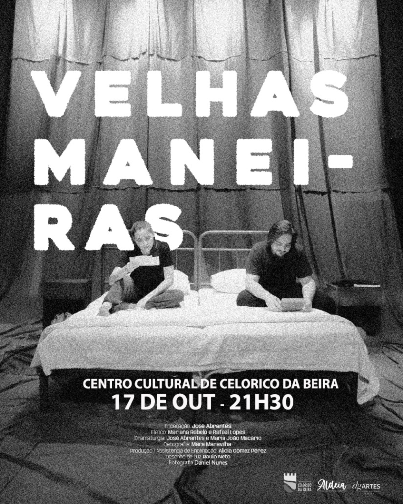 Produzida pela Aldeia – Associação Cultural e Artística, com o apoio da Direção Geral das Artes, “Velhas Maneiras” é uma peça teatral resultante da iniciativa “Oficinas de Escrita Criativa “, promovida nas Residências Artísticas ACERT – Associação Cultural e Recreativa de Tondela, nos municípios de Tondela, Seia Celorico da Beira, Gouveia e Tábua.
